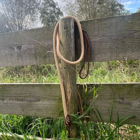 Hondenlijn van 1,5 meter lang met lederen handvat.